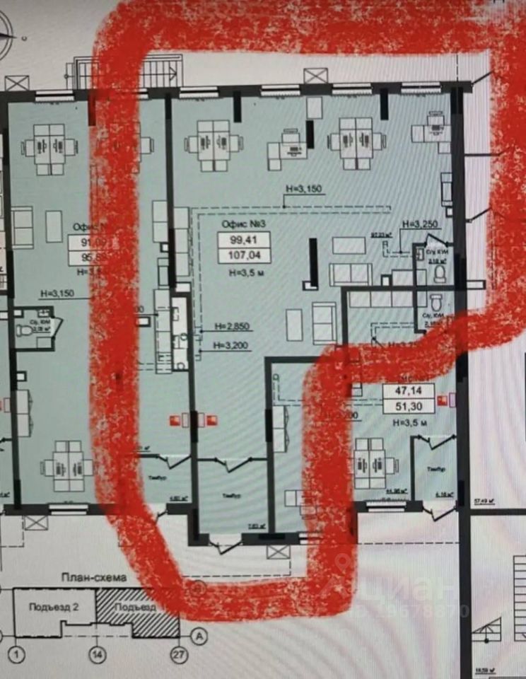 Помещение выполнено в предчистовой отделке, имеется пожарная сигнализация. Окна выходят на уютный двор, помещение очень светлое, с высокими потолками.