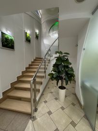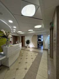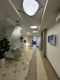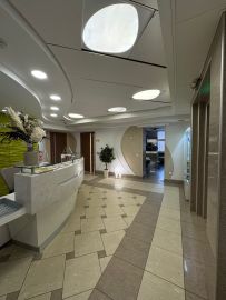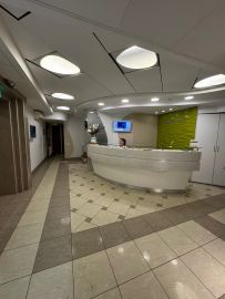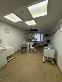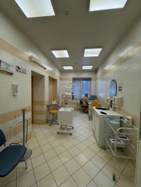 Здание спроектировано и построено непосредственно под клинику: Отдельная входная группа, кабинеты приема пациентов, венткамера, компрессорная, паркинг на 28 машин, зона ресепшн, касса, гардеробная, комнаты технического назначения, прачечная.