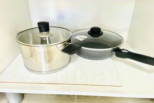 - Холодильник, микроволновая печь, плита, чайник, стиральная машина, посуда, утюг, гладильная доска, фен