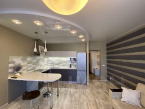 Шикарная квартира с дизайнерским ремонтом, огромная кухня гостиная, удобная спальня с выходом на большую застекленную лоджию, ванная комната в светлых тонах!!!Есть абсолютно все для комфортного проживания, с мебелью и техникой: холодильник, кухонный гарнитур, духовой шкаф, варочная панель, вытяжка, кофеварка, красивая посуда, стиральная машина, пылесос, два телевизора, сейф, обьемный шкаф- купэ, большая шикарная двуспальная кровать с ортопедическим матрасом, новый раскладной диван, красивые дизайнерские светильники, большая кухня, прихожая, водонагреватель, вся территория огорожена, большая детская и спортивная площадки, места для парковки личного автотранспорта за шлагбаумом через брелок, ранее не сдавалась все новое!