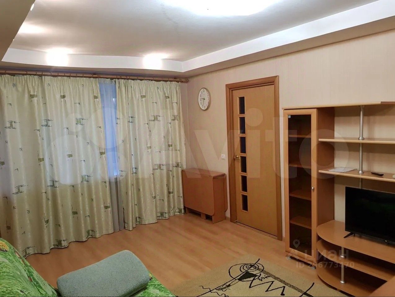 -Имеется мебель: диван, кухонный гарнитур, кухонный стол, 4 табурета, раскладной стол-книжка, стенка, трехстворчатый шкаф-купе, двухярусная кровать (большая, позволяет спать и взрослым), рабочий школьный стол с полочками, прихожая