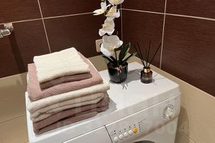 В квартире есть полностью оборудованная кухня, где вы сможете готовить свои любимые блюда. Так же есть стиральная машина и утюг, чтобы вы могли поддерживать свою одежду в идеальном состоянии.