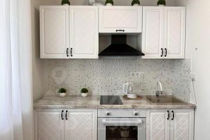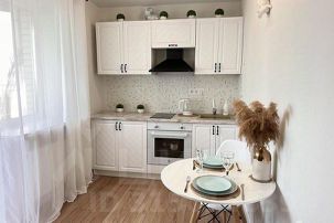 Полностью оборудованная кухня (электрическая плита, холодильник, микроволновка, электрочайник)