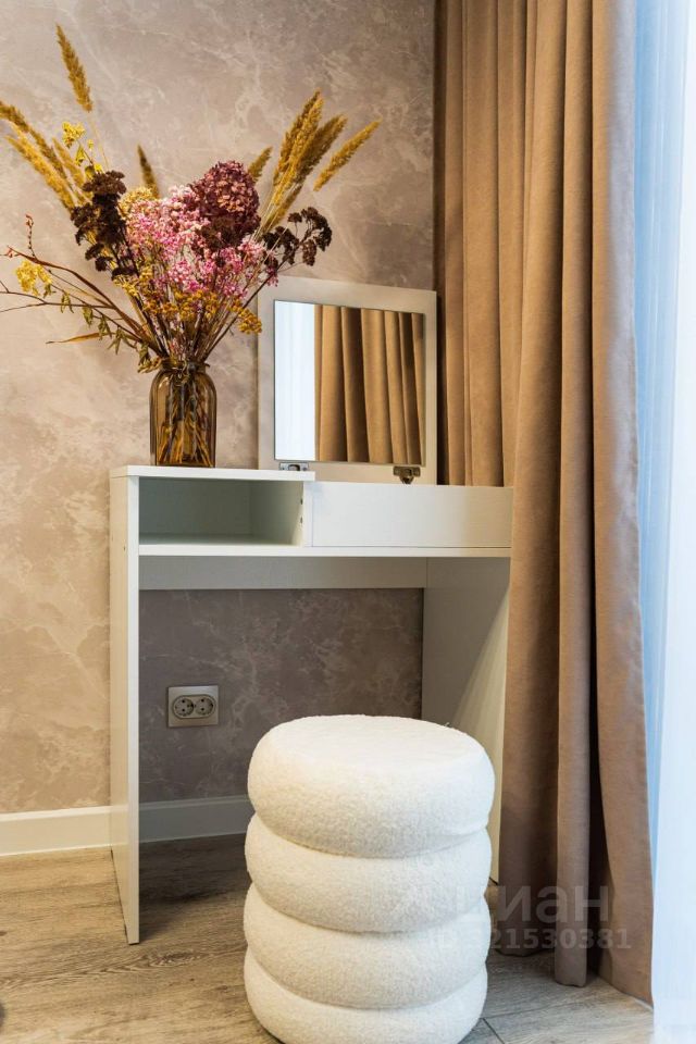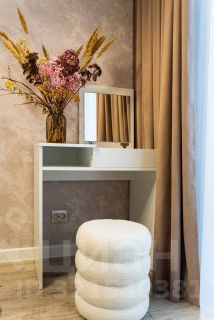 Отдельная бьюти-зона: столик с зеркалом и освещением, можно использовать для макияжа или как рабочее место.