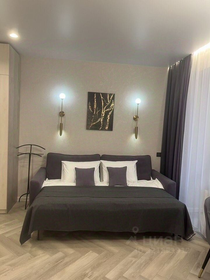 В квартире сделан современный ремонт, установлена новая мебель и оборудование. Имеется двуспальный раскладной диван шириной 150см. На балконе 5 м2 расположена уютная лаунж-зона, где можно спокойно провести время.