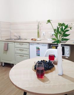 Дополнительно: посуда, кухонные принадлежности, свежее постельное бельё и мягкие полотенца, гладильная доска, сушилка для белья, одноразовые средства гигиены, чай, кофе.