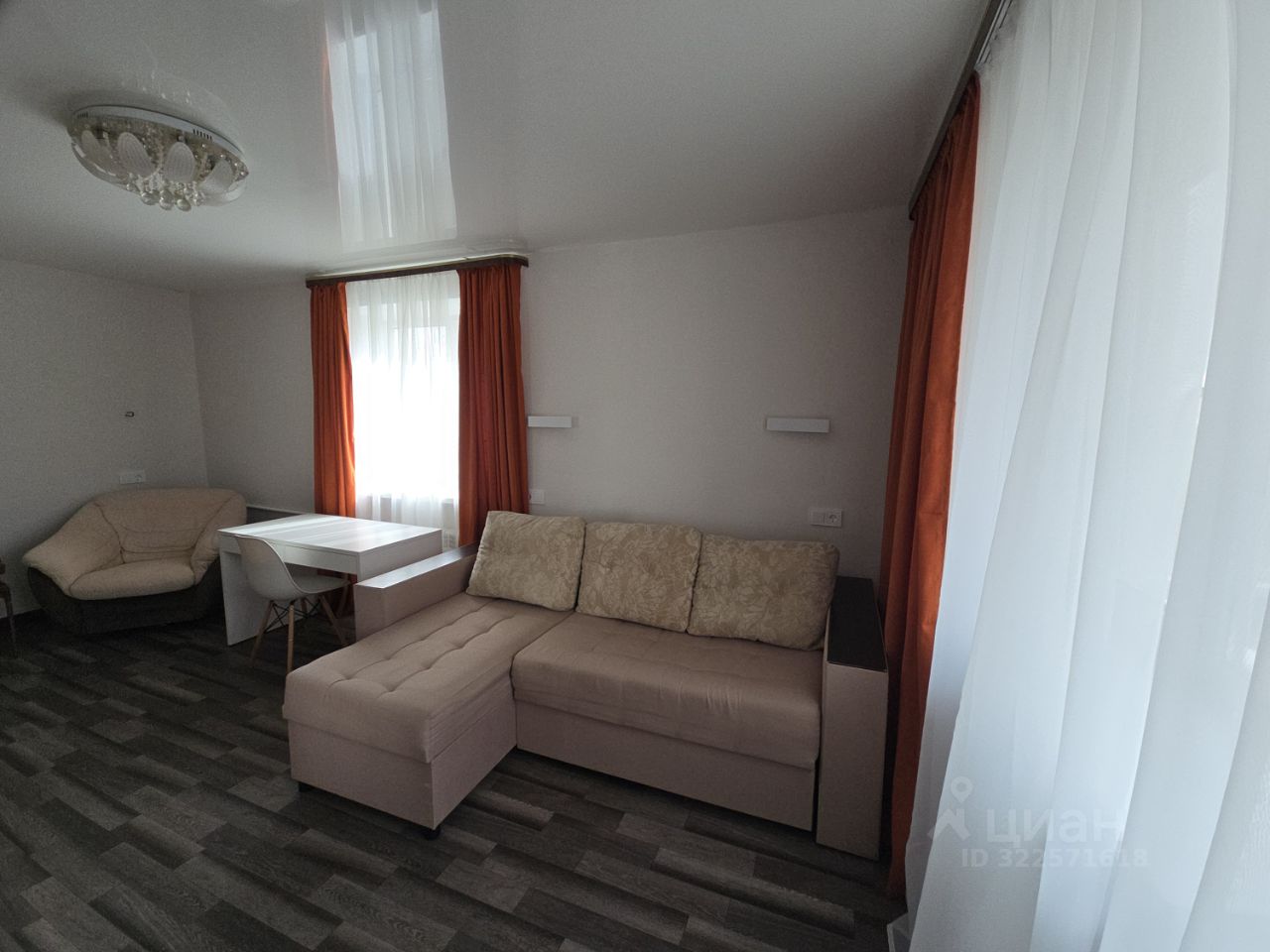 Гостиная: светлая теплая комната с удобным диваном, комфортным креслом и шкафом для одежды. Современный письменный стол позволит комфортно поработать за компьютером