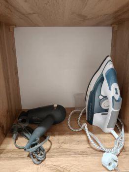 - стиральная машина, утюг, гладильная доска, сушилка для белья, фен