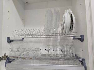 - Полностью оборудованная кухня (электрическая плита, холодильник, микроволновка, электрочайник)