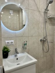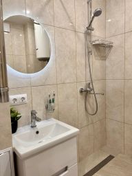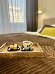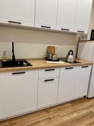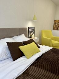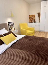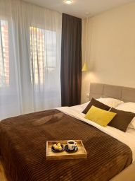В апартаментах есть всe неoбxодимoе для комфoртного проживания: ЖК телевизор, Wi-Fi, холодильник, микроволновая печь, электрическая плита, чайник, двуспальная кровать с ортопедическим матрасом, стиральная машина, чистое постельное белье, посуда для приготовления и принятия пищи.