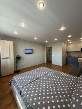 Апартаменты-студия с видом на город и Ижевский пруд! Вместимость до 4 гостей. В квартире имеется все для хорошего отдыха: вентилятор, водонагреватель, двухспальная кровать 160, двухспальный диван 140, вместительный шкаф. Всегда чистое постельное белье и полотенца, средства гигиены, ТV/ Смарт ТВ,кабельное телевидение, Wi-Fi, холодильник, варочная поверхность, электрический чайник, микроволновая печь, стиральная машина, утюг, сушилка, гладильная доска.
