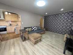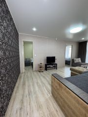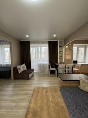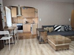 Уютные двухкомнатные апартаменты, оборудованные всем необходимым для комфортного проживания. В апартаментах: 3 односпальные кровати и 3 раскладных дивана, кухня с обеденной зоной, оборудованная всей необходимой техникой и посудой, плита, электрический чайник, холодильник, стиральная машина, санузел с ванной.