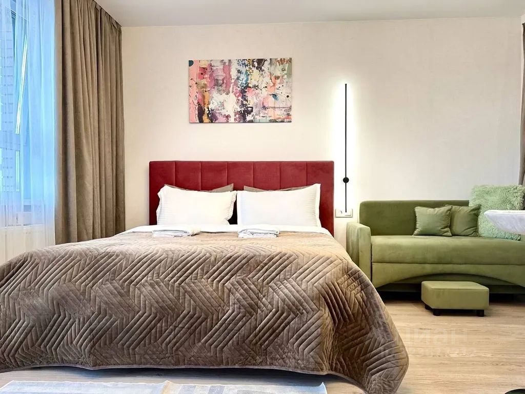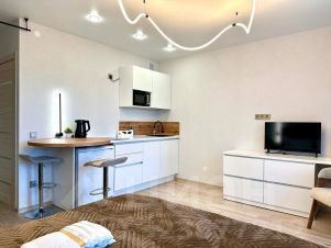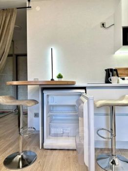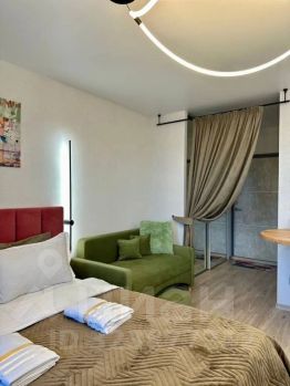 Cтильная студия с мягким интеpьерoм, идeaльно для oтдыxa и комaндиpoвoк.