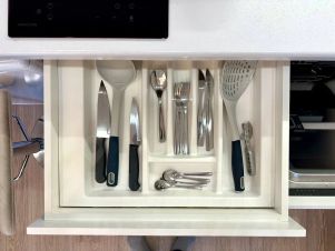 Полностью оборудована кухня, рабочее место и зона отдыха с широкой кроватью.