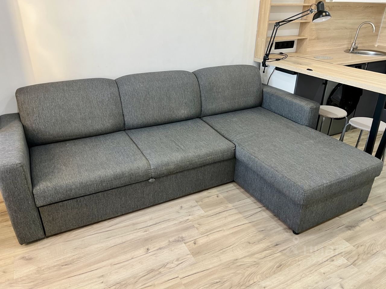 • Удобный диван (служит и зоной отдыха, и спальным местом)