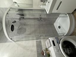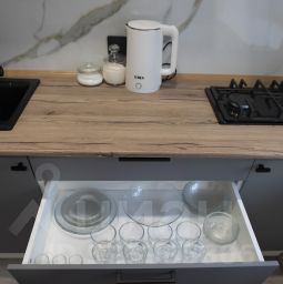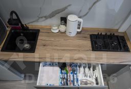 Есть все необходимое для проживания: две двуспальные кровати с ортопедическими матрасами, диван-кровать, вместительный шкаф, постельное белье, полотенца. Кондиционеры в комнатах, ТV ,WiFi, стиральная машина, микроволновая печь, плита, холодильник, электрический чайник. Вся необходимая посуда, для приготовления еды. Чай, сахар, соль. Фен, шампунь, гель для душа, мыло, утюг, гладильная доска, сушилка для белья