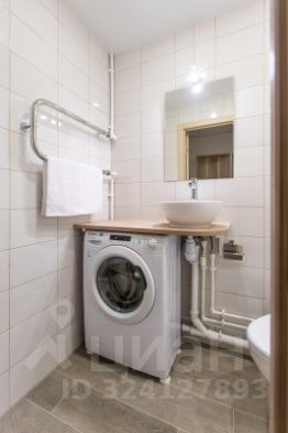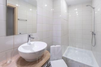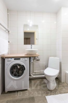 В санузле имеется душ, унитаз, раковина, стиральная машина и фен.