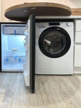 - Полностью оборудована кухня, рабочее место и зона отдыха с широкой кроватью.