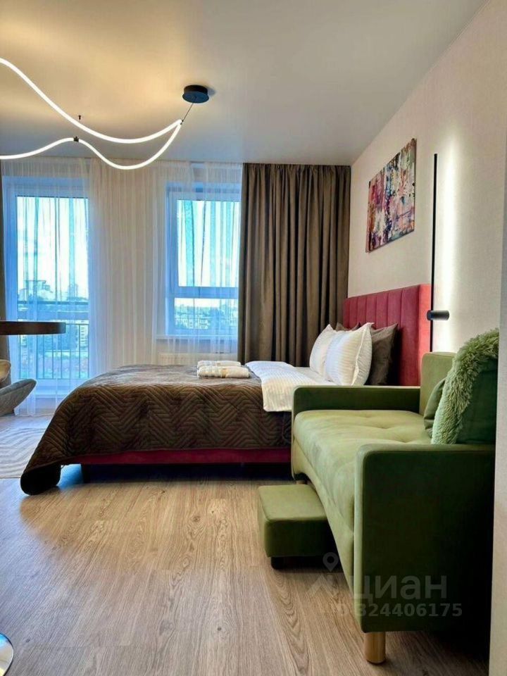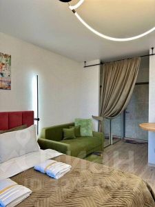 Стильная студия с мягким интерьером, идеально для отдыха и командировок.