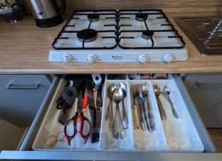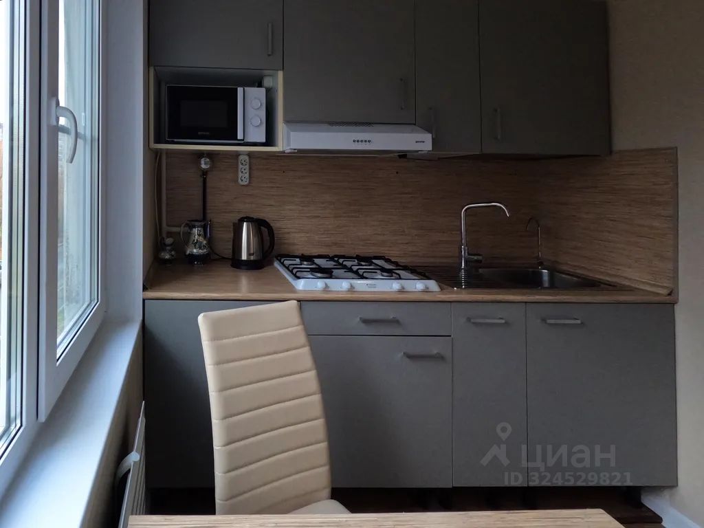 Холодильник, газовая плита, микроволновка. Вся посуда.