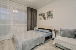 Удобства: двуспальный диван и двуспальная кровать, заправленная свежим постельным бельем.