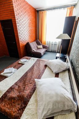Двухместный номер с двуспальной кроватью и диваном в изысканном дизайне.