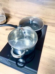 В апартаментах есть все, что необходимо для проживания: спальные места, постельное белье и полотенца, вентилятор, пылесос, плита, микроволновая печь, холодильник, чайник, посуда, телевизор, Wi-Fi, гигиенические и гладильные принадлежности, водонагреватель, стиральная машина, фен.