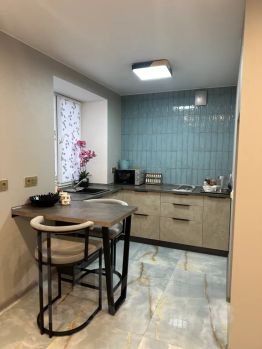 Совершенно новая студия с ремонтом для VIP гостей! Все удобства, комфорт, свежее новое бельё, холодильник с самым необходимым чтобы утолить голод, удобная кухня и комфортная ванная комната со всеми гигиеническими принадлежностями для гостей.
