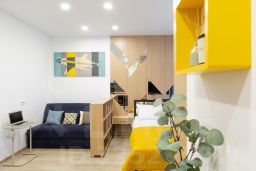 Квартира предназначена для проживания командировочных, путешествующих семейных пар и пар с детьми. Заселение возможно для лиц, не моложе 23 лет. В квартире нет балкона (строго для не курящих).