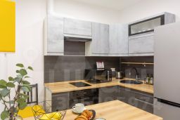 На кухне Вы можете самостоятельно приготовить блюда или разогреть готовую пищу в микроволновой печи, также есть чайник, холодильник, варочная панель, набор посуды и столовых принадлежностей.