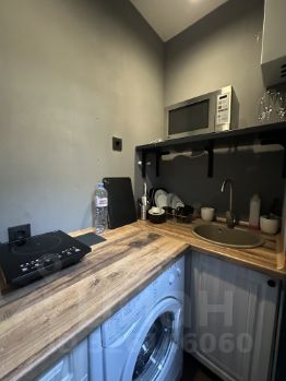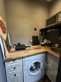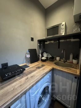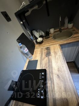 Полноценной кухни нет, есть небольшое место для готовки. Холодильник с морозильной камерой, микроволновая печь, плитка, посуда.