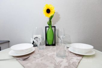 Полностью оборудованная кухня (посуда, свч, чайник);