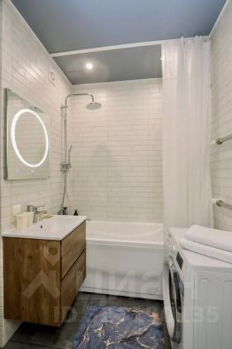 - Санузел: ванна, современная отделка, зеркало с подсветкой, свежие полотенца.