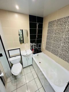 Обратите внимание на стильную и современную ванную комнату, совмещенную с санузлом. Она выполнена в светлых тонах и оснащена всеми необходимыми удобствами, что делает её функциональной и уютной.