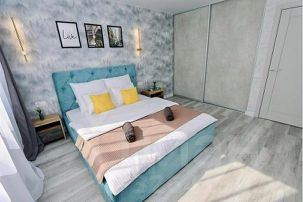 • Спальня: двуспальная кровать, система хранения, ночные светильники, телевизор со Смарт-ТВ