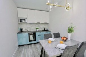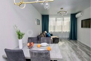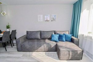 • Кухнягостиная: вся необходимая бытовая техника, посуда, обеденный стол, угловой диван, большой Смарт-ТВ