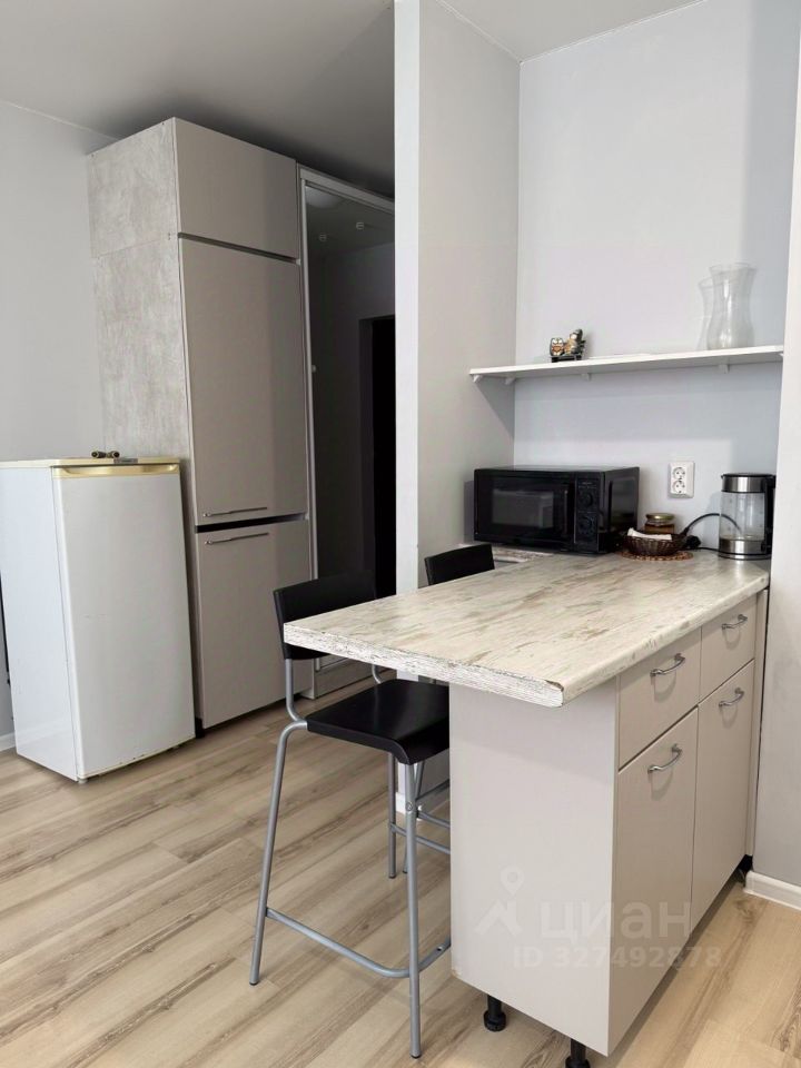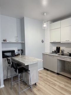 В квартире сделан косметический ремонт. Пространство студии организовано так, чтобы все необходимое было под рукой: в комнате и на кухне есть мебель, которая позволит комфортно разместиться. Из техники в вашем распоряжении кондиционер, холодильник, микроволновая печь и стиральная машина.