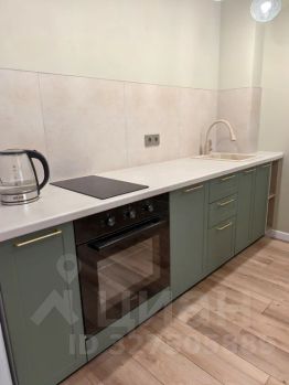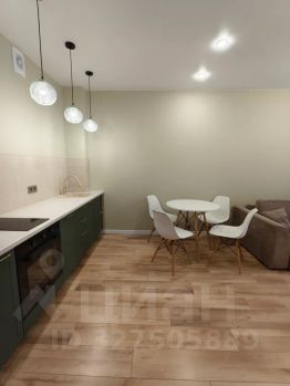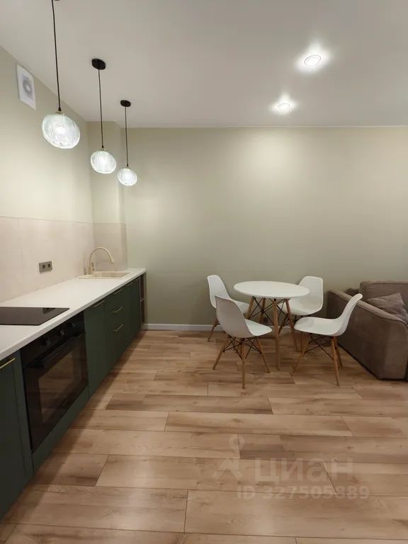 - Современная кухня с обеденным столом, где можно приготовить вкусную еду, так же там стоит большой раскладной диван