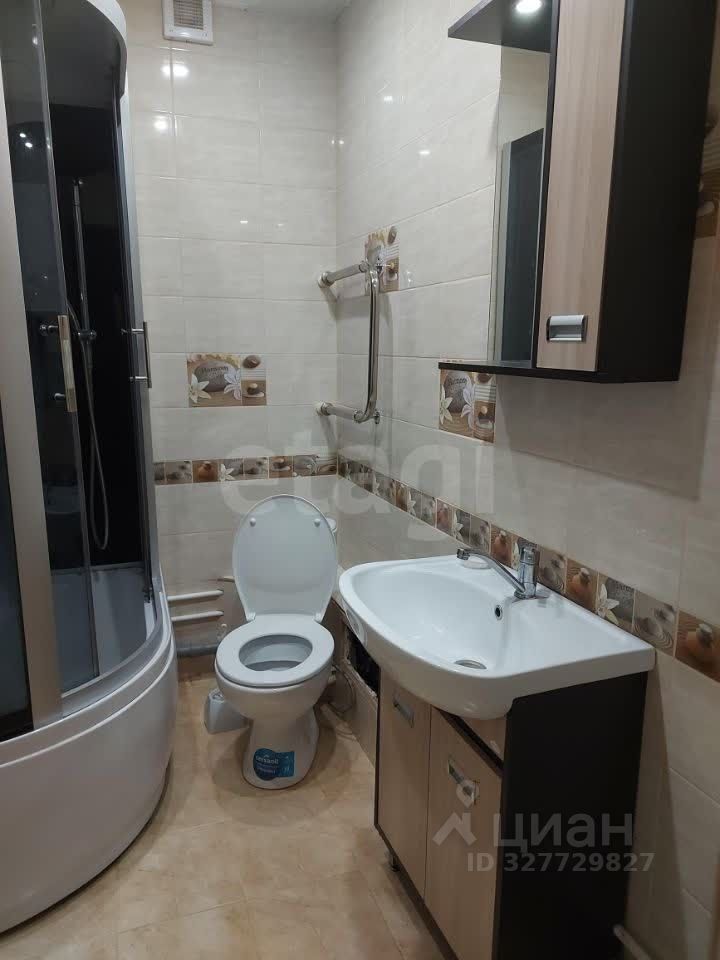 В ванной комнате установлена душевая кабина с гидромассажем, удобные шкафчики и зеркала. Пол покрыт бельгийским ламинатом — тепло и уютно круглый год. Оплата всего 33 000 рублей в месяц — включая все коммунальные услуги и счетчики. Залог можно разделить на два платежа.