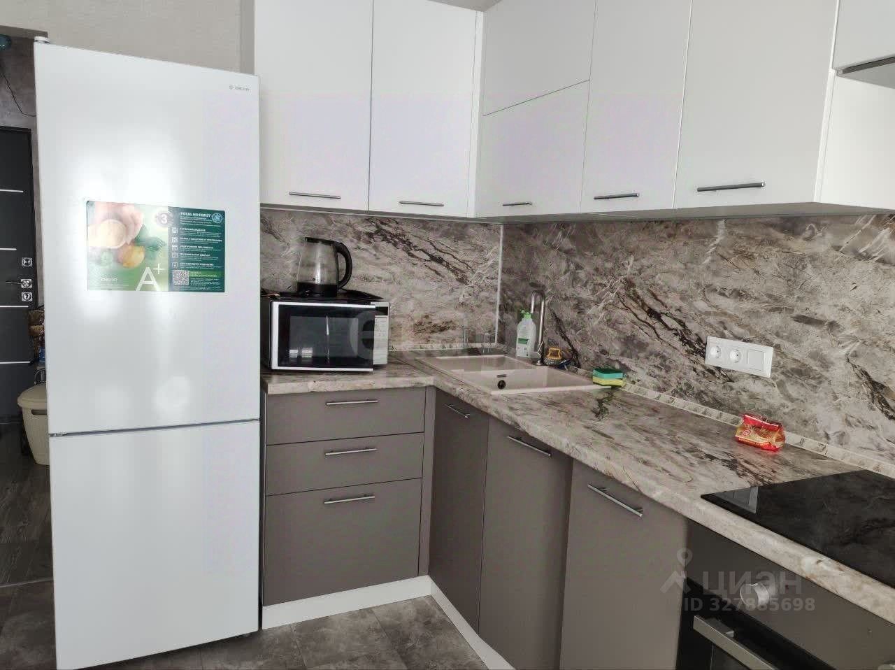 В квартире сделан ремонт. Здесь есть всё необходимое для комфортной жизни: современная мебель на кухне и в комнате, а также полный комплект техники — кондиционер, холодильник, посудомоечная и стиральная машины, телевизор. Санузел совмещённый, оборудован душевой кабиной.