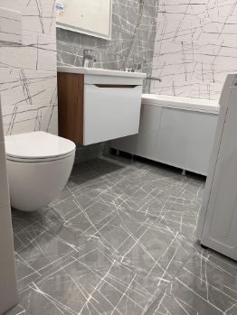 Санузел совмещенный, оформлен керамической плиткой, оборудован ванной и стиральной машиной.