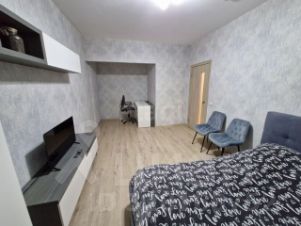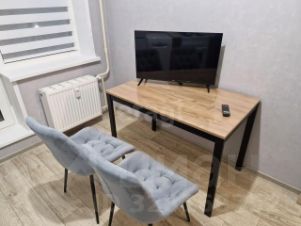 Комната: Кровать с матрасом Аскона, книжный шкаф, мягкие современные стулья, тумба под ТВ, телевизор Smаrt ТV, компьютерный стол — удобно для работы или учебы.