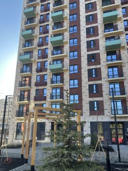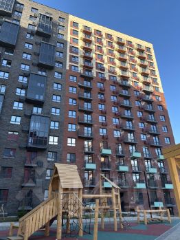 Двор современный и красивый, без машин с большой детской и спортивной площадкой, есть места для отдыха. Парковка открытая за пределами двора.