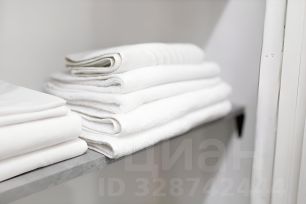 чистое постельное бельё и полотенца после профессиональной прачечной;