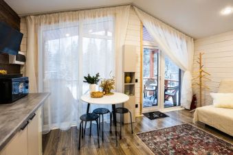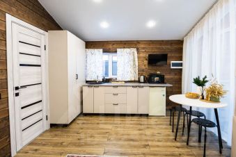 - Оборудованная кухня: холодильник, микроволновая печь, чайник, набор посуды, плита по запросу
