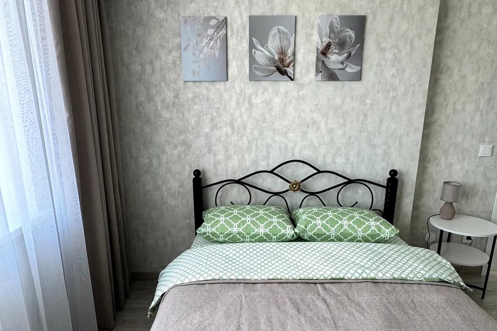 Просторная однокомнатная квартира с большой двуспальной кроватью с ортопедическим матрасом и раскладным диваном.