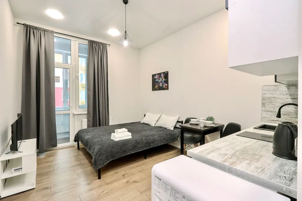 Просторная квартира-студия с высотой потолков 3, 5м с большой двуспальной кроватью с ортопедическим матрасом размерами 1, 8х2м