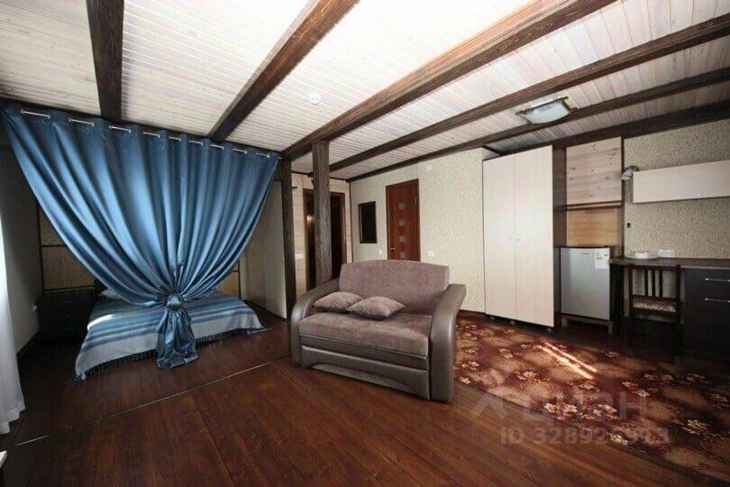 В номере: двуспальная кровать, прикроватные тумбы, диван, шифоньер, стенка ТВ, кухонный гарнитур, стулья.