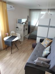Каждая квартира укомплектована всем необходимым для комфортного размещения: двуспальная кровать 160 см, раскладной диван 140см, кабельное ТВ, скоростной wi-fi, кухонный гарнитур с необходимым набором техники и посуды, холодильник, электрический духовой шкаф, электрическая варочная панель, СВЧ, чайник, водонагреватель, стиральная машина, утюг.