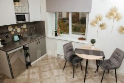 Каждая квартира укомплектована всем необходимым для комфортного размещения: двуспальная кровать 160 см, раскладной диван 140см, кабельное ТВ, скоростной wi-fi, кухонный гарнитур с необходимым набором техники и посуды, холодильник, электрический духовой шкаф, электрическая варочная панель, СВЧ, чайник, водонагреватель, стиральная машина, утюг.